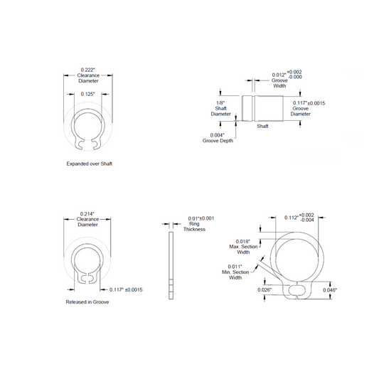 1/8" (.125) External Snap Ring, Retaining Ring, SAE, Black Phosphate, inch