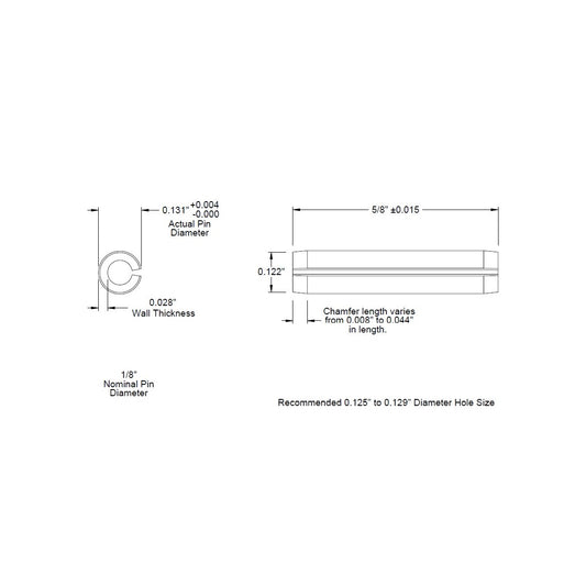 1/8 Dia. (0.125), SAE Roll Pin x 5/8 (0.625) lg., long, Slotted Spring Pin