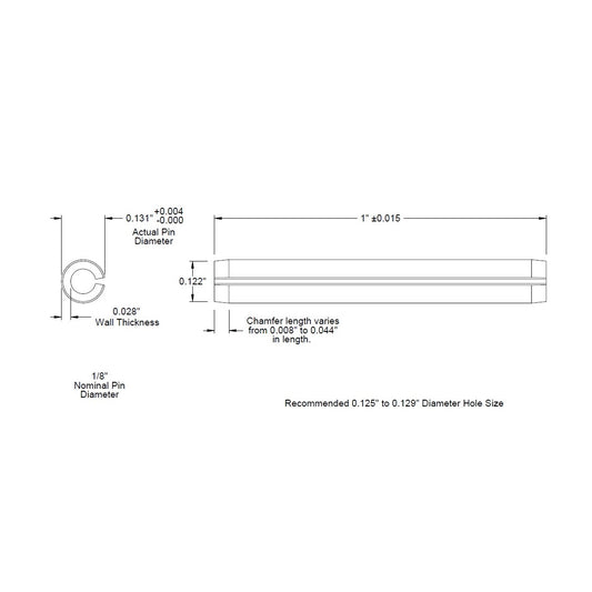 1/8 Dia. (0.125), SAE Roll Pin x 1 (1.000) lg., long, Slotted Spring Pin