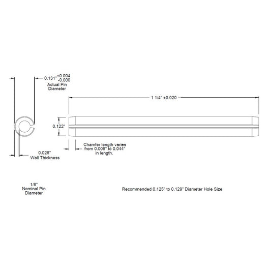 1/8 Dia. (0.125), SAE Roll Pin x 1 1/4 (1.250) lg., long, Slotted Spring Pin