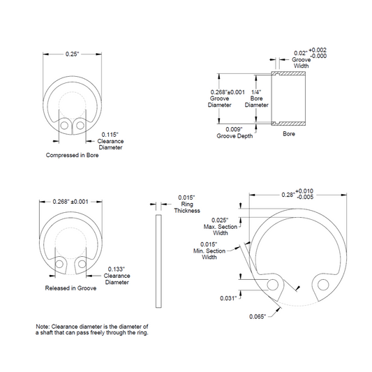 1/4" (0.250) ** Internal ** Retaining Ring, Snap Ring, SAE, Black Phosphate