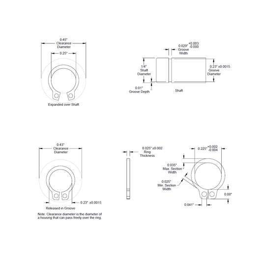 1/4" (.250) External Snap Ring, Retaining Ring, SAE, Black Phosphate, Inch