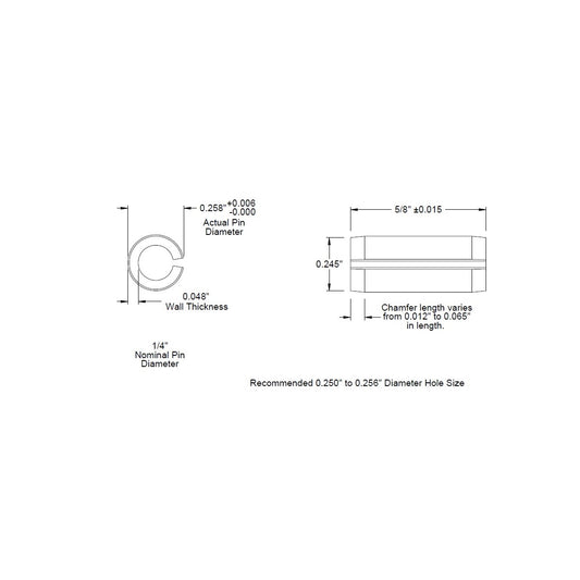 1/4 Dia. (0.250), SAE Roll Pin x 5/8 (0.625) lg., long, Slotted Spring Pin