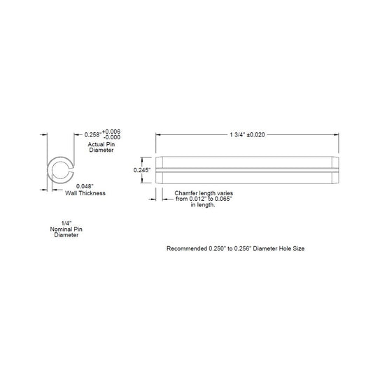 1/4 Dia. (0.250), SAE Roll Pin x 1 3/4 (1.750) lg., long, Slotted Spring Pin
