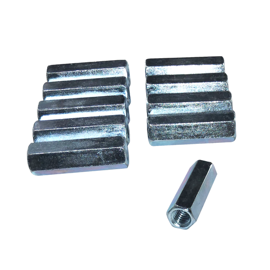 10 pc., 1/4-20 X 7/8" Long UNC Hex Coupling Nut, Zinc Plated, Coarse Thread