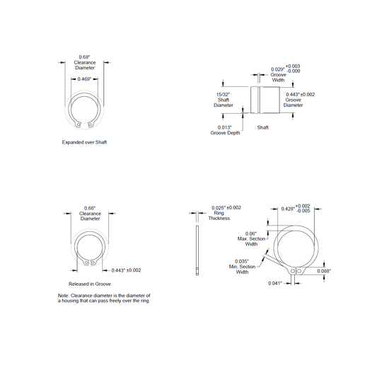 15/32" (.468) External Snap Ring, Retaining Ring, SAE, Black Phosphate, Inch