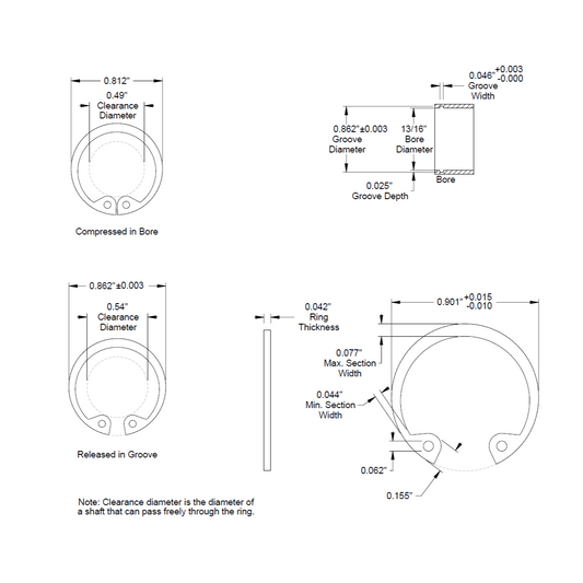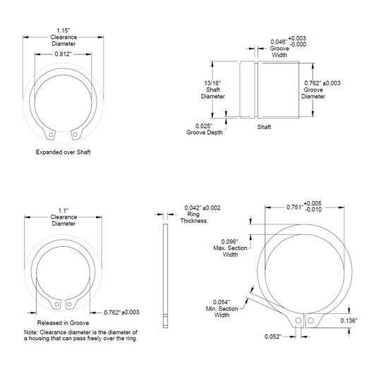 13/16" (.812) External Snap Ring, Retaining Ring, SAE, Black Phosphate, Inch