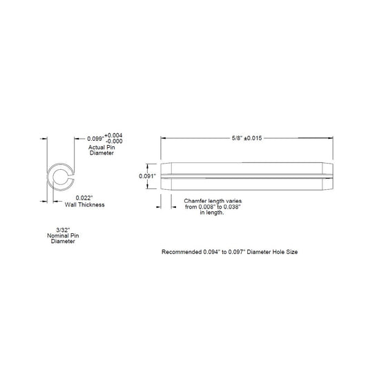3/32 Dia. (.093), SAE Roll Pin x 5/8 (0.625) lg., long, Slotted Spring Pin