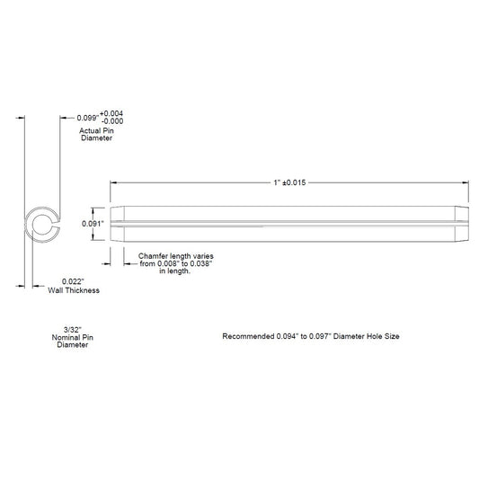 3/32 Dia. (.093), SAE Roll Pin x 1 (1.000) lg., long, Slotted Spring Pin