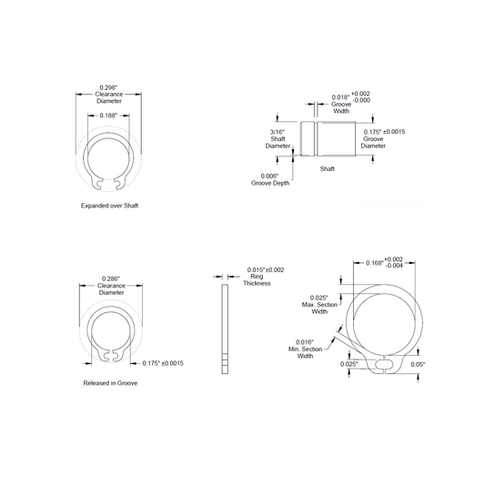 3/16" (.187) External Snap Ring, Retaining Ring, SAE, Black Phosphate, Inch