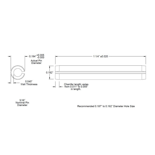 3/16 Dia. (0.188), SAE Roll Pin x 1 1/4 (1.250) lg., long, Slotted Spring Pin