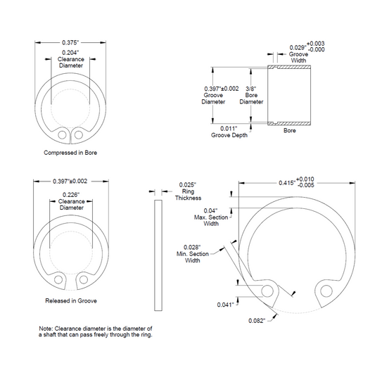 3/8" (0.375) ** Internal ** Retaining Ring, Snap Ring, SAE, Black Phosphate