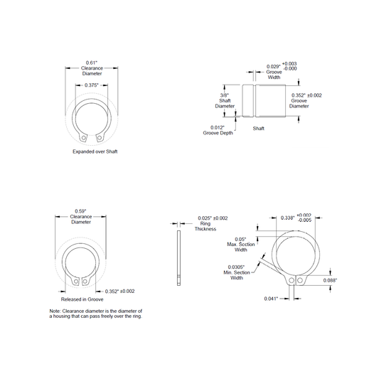 3/8" (.375) External Snap Ring, Retaining Ring, SAE, Black Phosphate, Inch