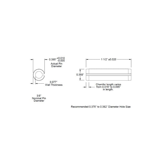 3/8 Dia. (0.375), SAE Roll Pin x 1 1/2 (1.500) lg., long, Slotted Spring Pin