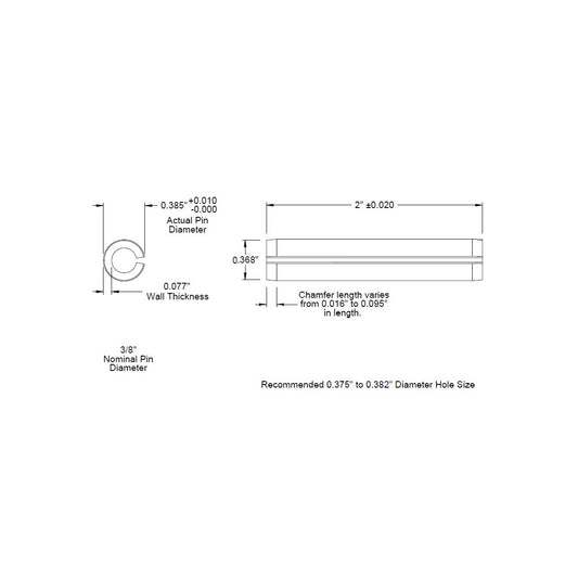 3/8 Dia. (0.375), SAE Roll Pin x 2 (2.000) lg., long, Slotted Spring Pin