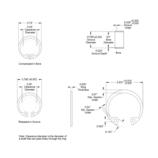 3/4" (0.750) ** Internal ** Retaining Ring, Snap Ring, SAE, Black Phosphate