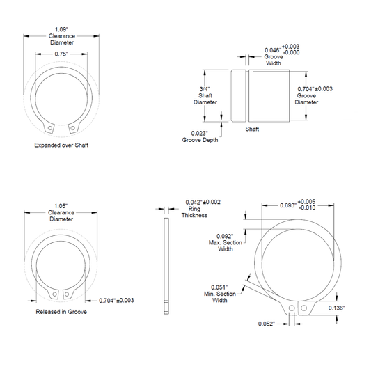 3/4" (.750) External Snap Ring, Retaining Ring, SAE, Black Phosphate, Inch